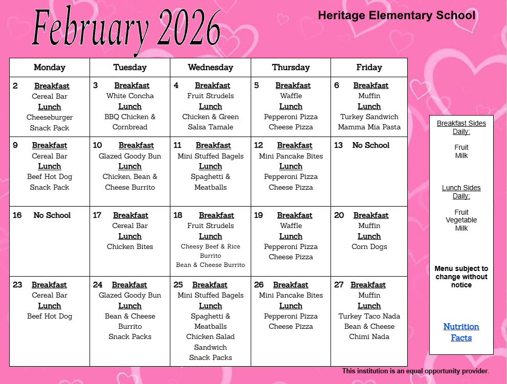 From all of us at Heritage Elementary, we hope you have a wonderful week. Go White Tigers!