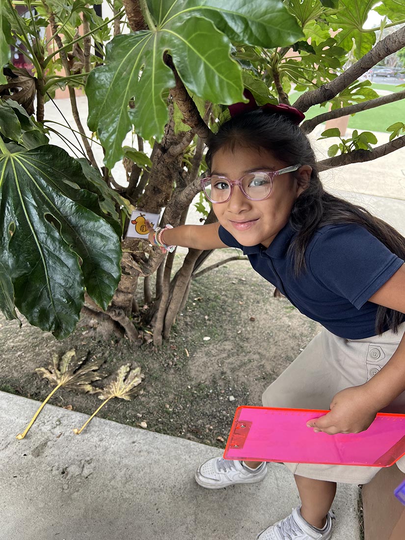 Mrs. Tadrous took students on a reading scavenger hunt, encouraging them to take initiative to find sound cards around campus.